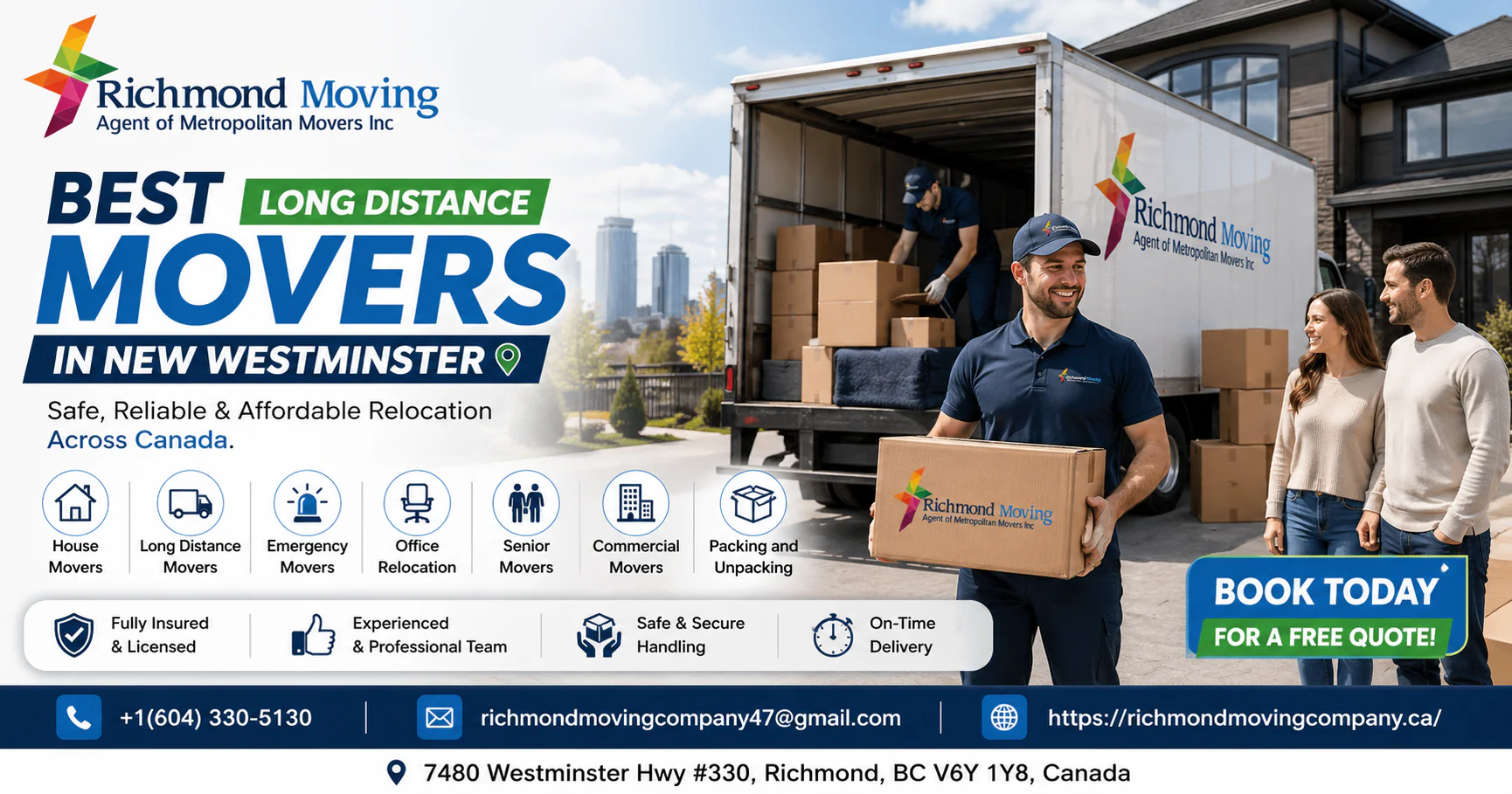 Trust Richmond Moving for professional Long Distance Movers in New Westminster. Get your free consultation today and move with confidence.